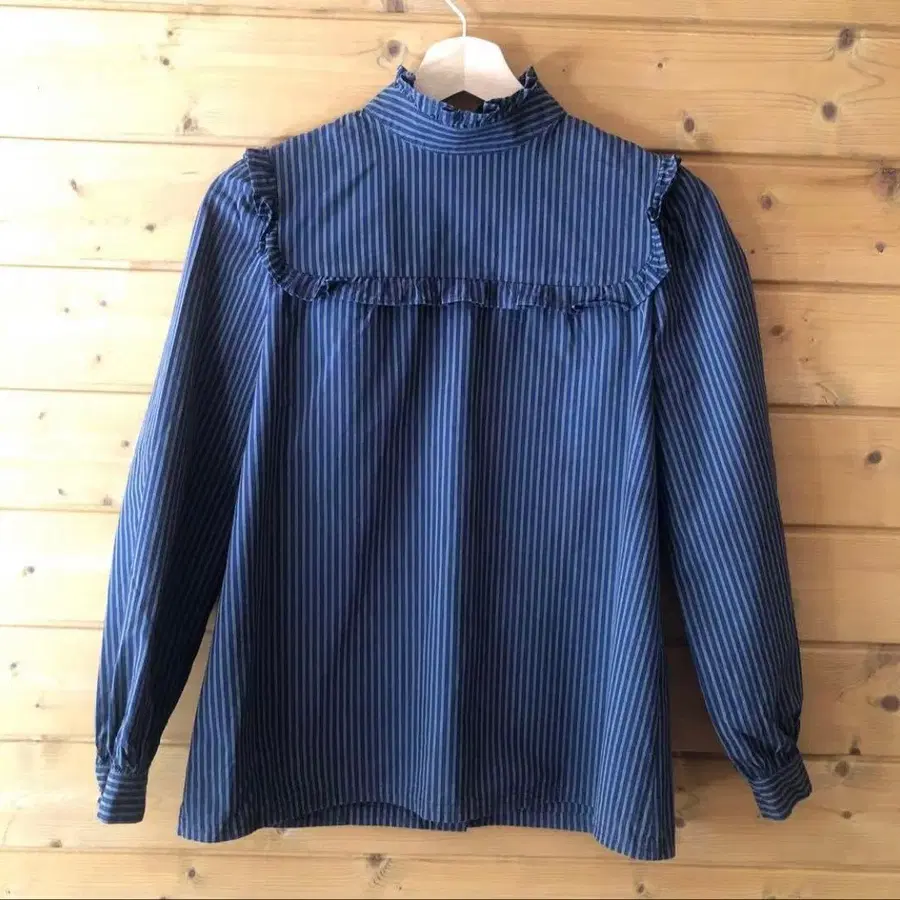 APC 네이비 스트라이프 프릴 하이넥 긴팔 셔츠