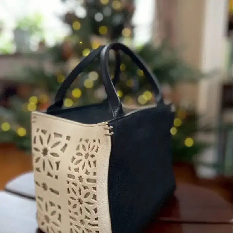 가죽 토트백 블랙과 화이트 컷 아웃 디자인