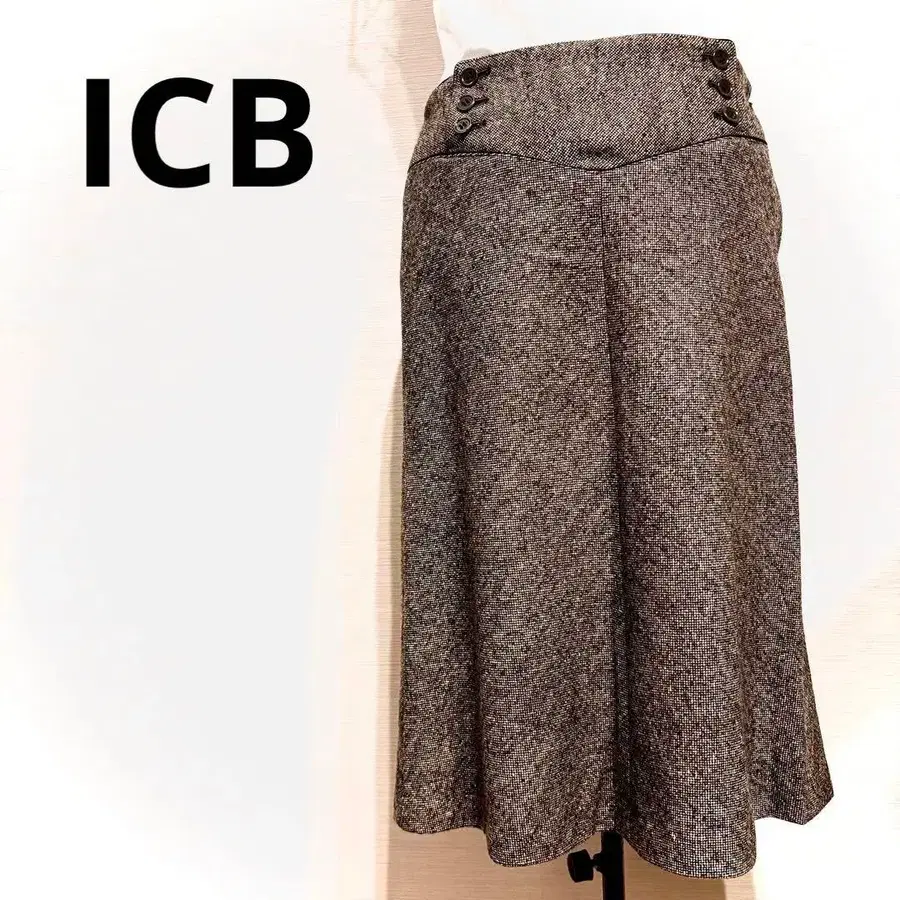 ICB 플레어 스커트 일본제 트위드풍 11호 브라운 844