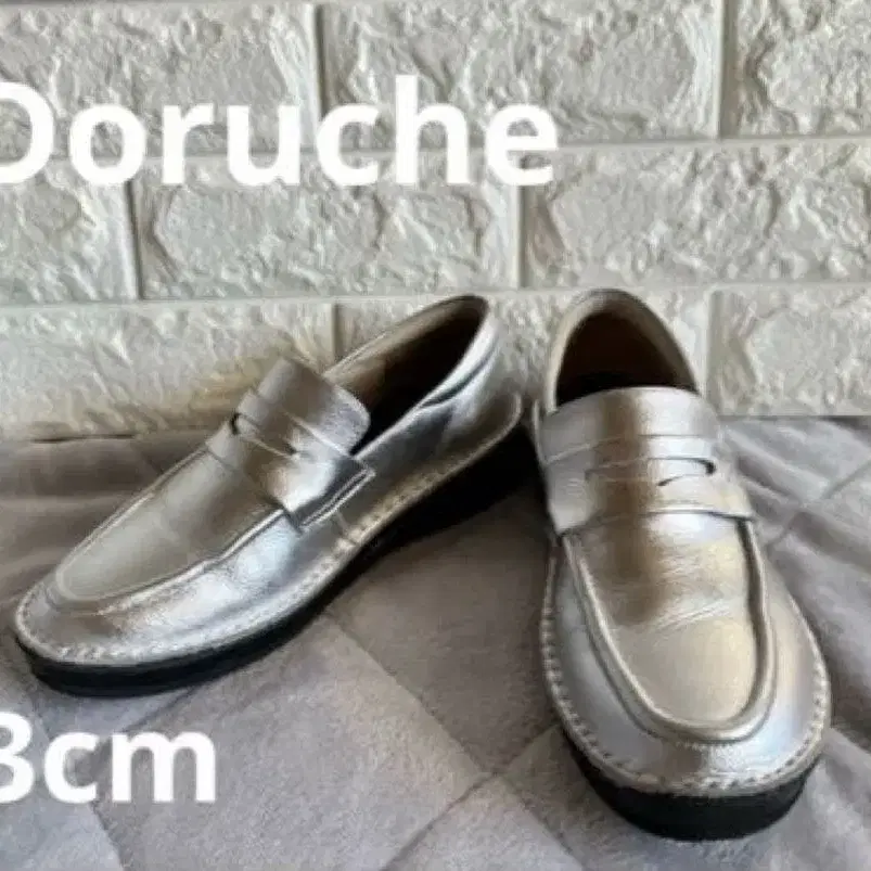 새상품급 돌체 소가죽 스티치 다운 로퍼 실버 23cm 일본제