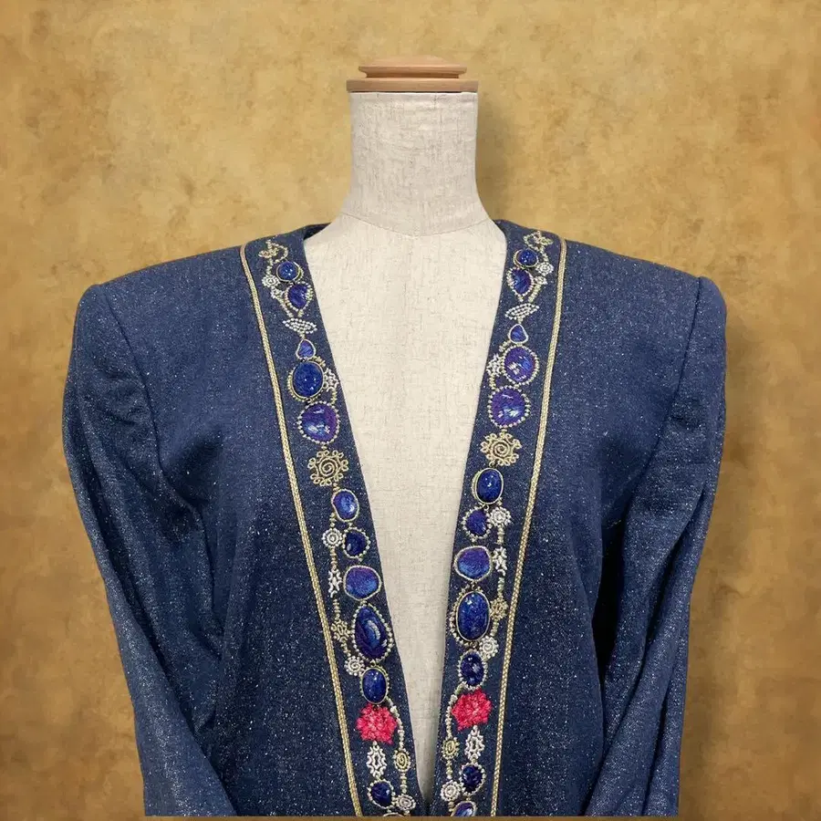 [시간을 도는] LEONARD 노카라 데님지 실크 100% 자수 자켓