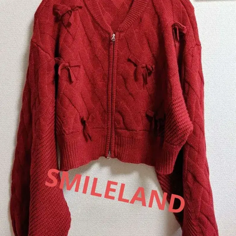스마일랜드 빨간색 케이블 짜임 니트 가디건 루즈핏 4L