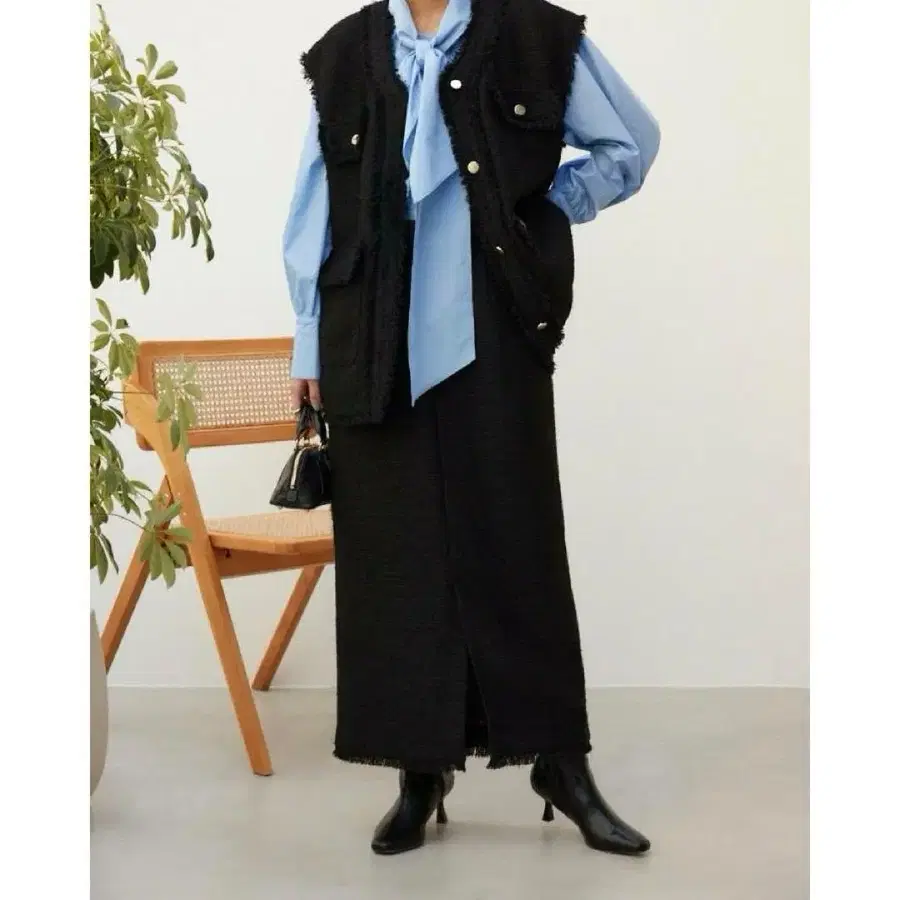 chieko+ 트위드 볼 베스트 블랙 36 오늘 한정