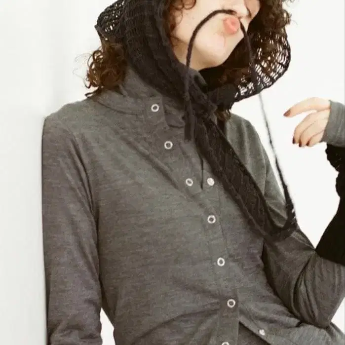 [ iAWAK 아이아 ] 터틀넥 가디건 그레이