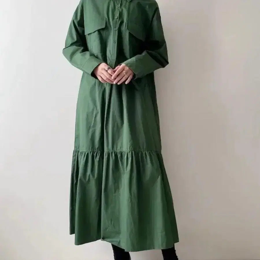 자라 ZARA 티어드 셔츠 롱 원피스 [ M ] 그린