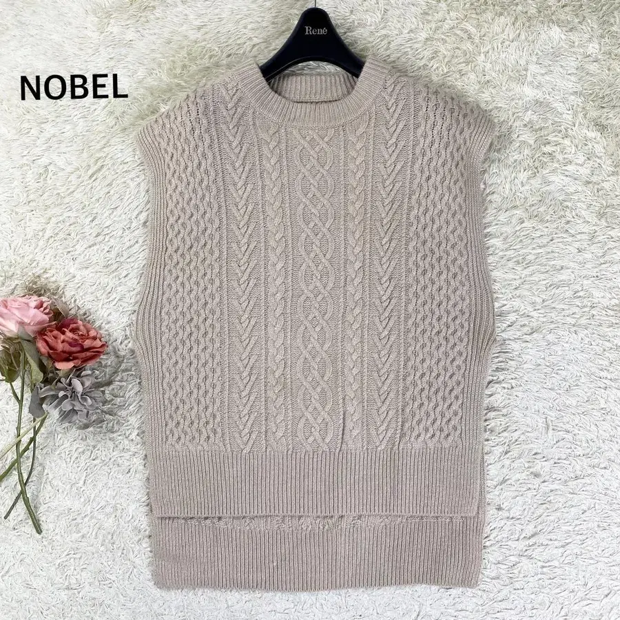 컨디션 최상 노블 아란 니트 니트 베스트 베스트 캐시미어 혼방 F 베이지