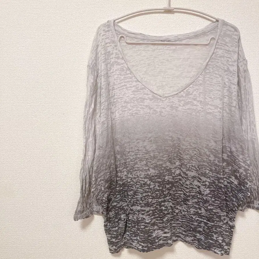 T셔츠 [ M ] 그라데이션 V넥 긴팔 비침