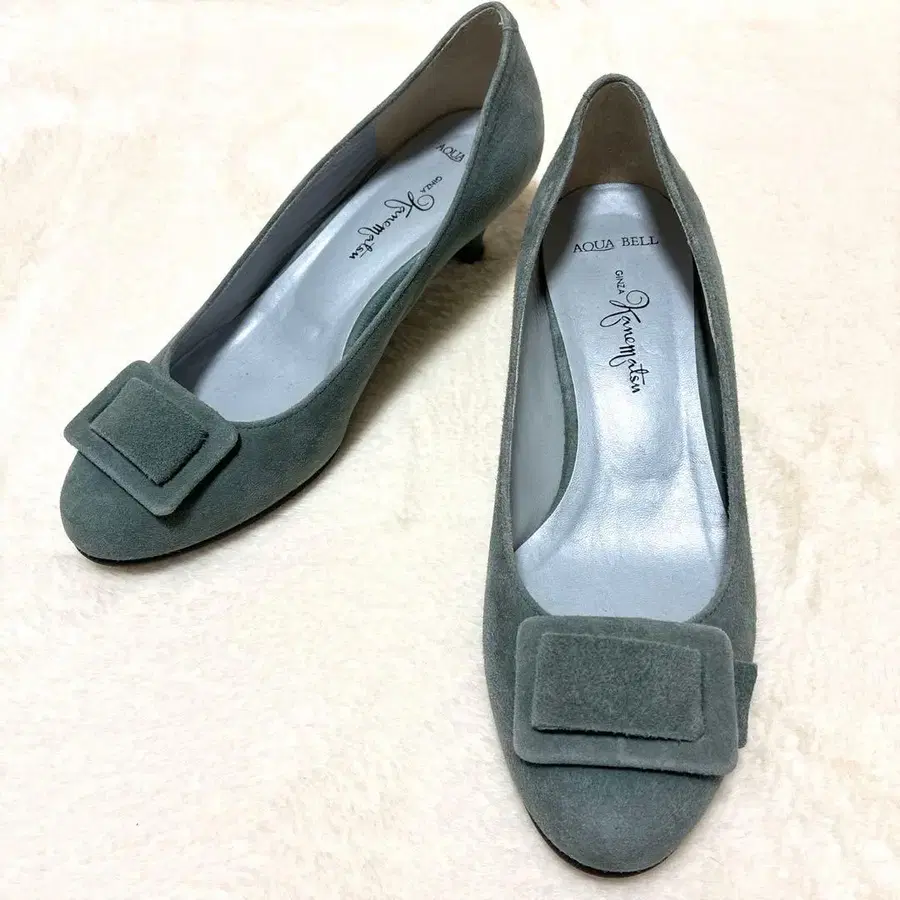 새상품급 긴자 카네마츠 펌프스 23.5 로우힐 스웨이드 블루 그레이