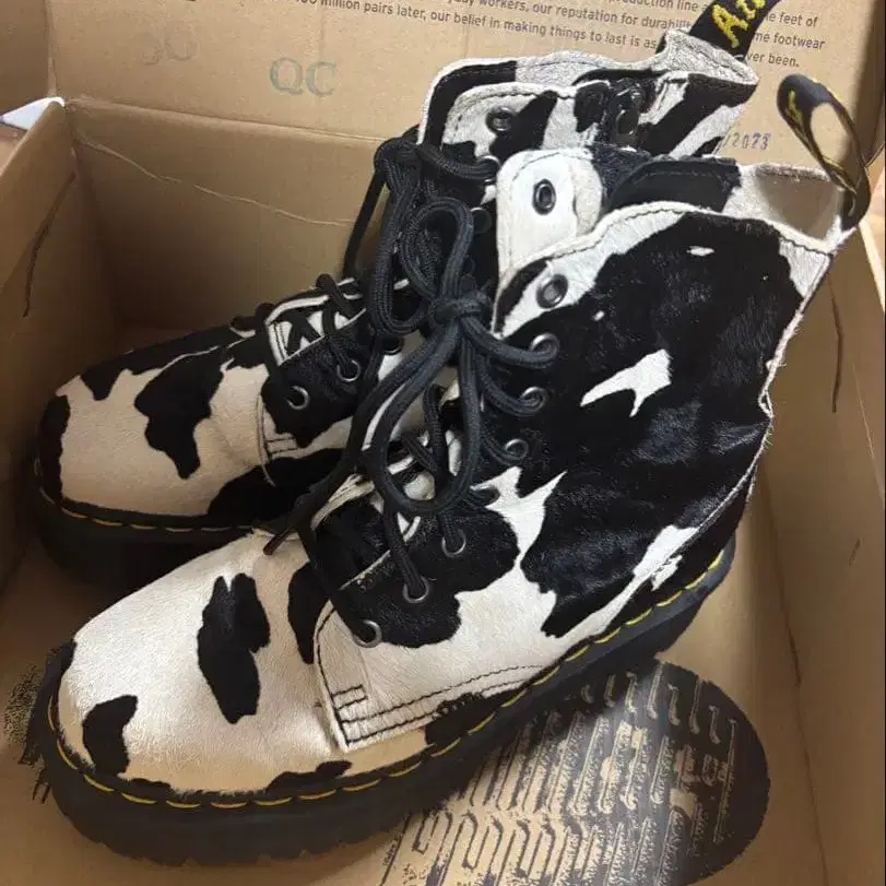 닥터마틴의 인기 모델 JADON (제이든)의 소 패턴 (카우 패턴) 디자인입니다.