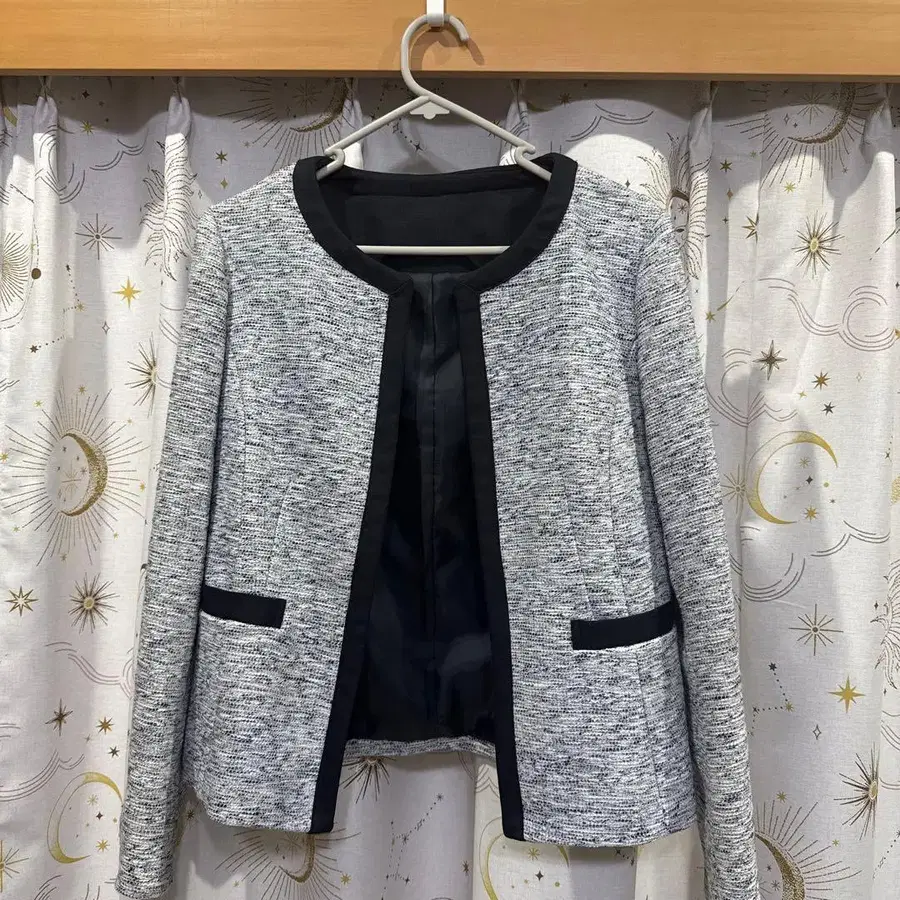 그레이와 블랙 트위드 노카라 자켓