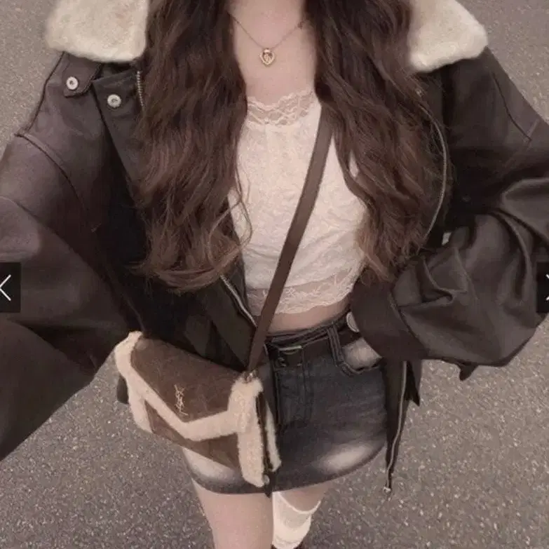 그레일 GRL 퍼 티펫 포함 가죽 블루종 [fo1988] 브라운