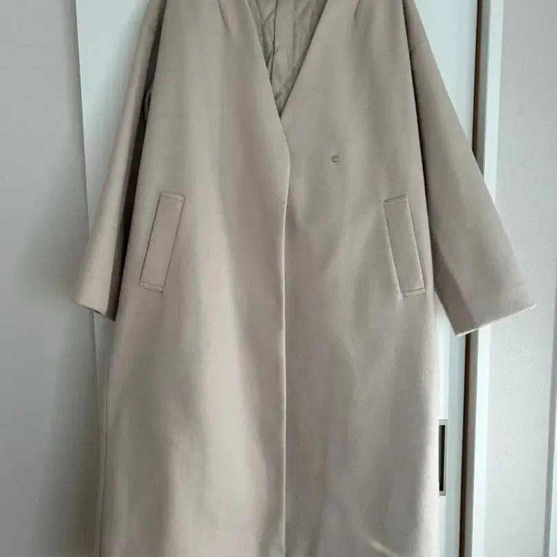 Aunt Marie's 베이지 롱 코트 오픈 프론트