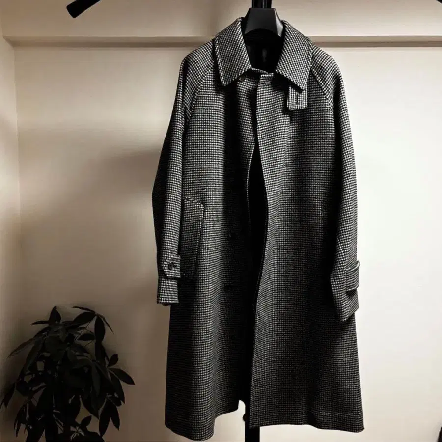 ■ 디자인 래글런 슬리브에 A라인의 넉넉한 실루엣의 발마칸 코트. 잔잔한 핸드 투스 패턴으로 차분한 분위기입니다. ■