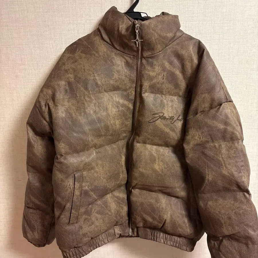 GEEK CAMOUFLAGE PU LEATHER PUFFER JACKET