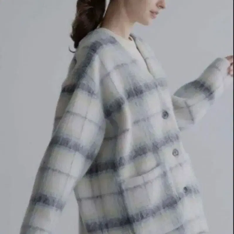 ohga 샤기 코디 가디건 오가 체크 무늬