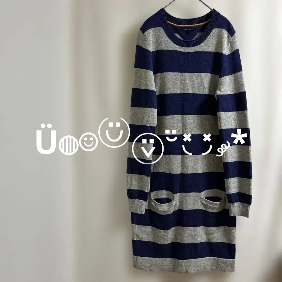 타미힐피거 보더 니트 롱 원피스 그레이 x 네이비