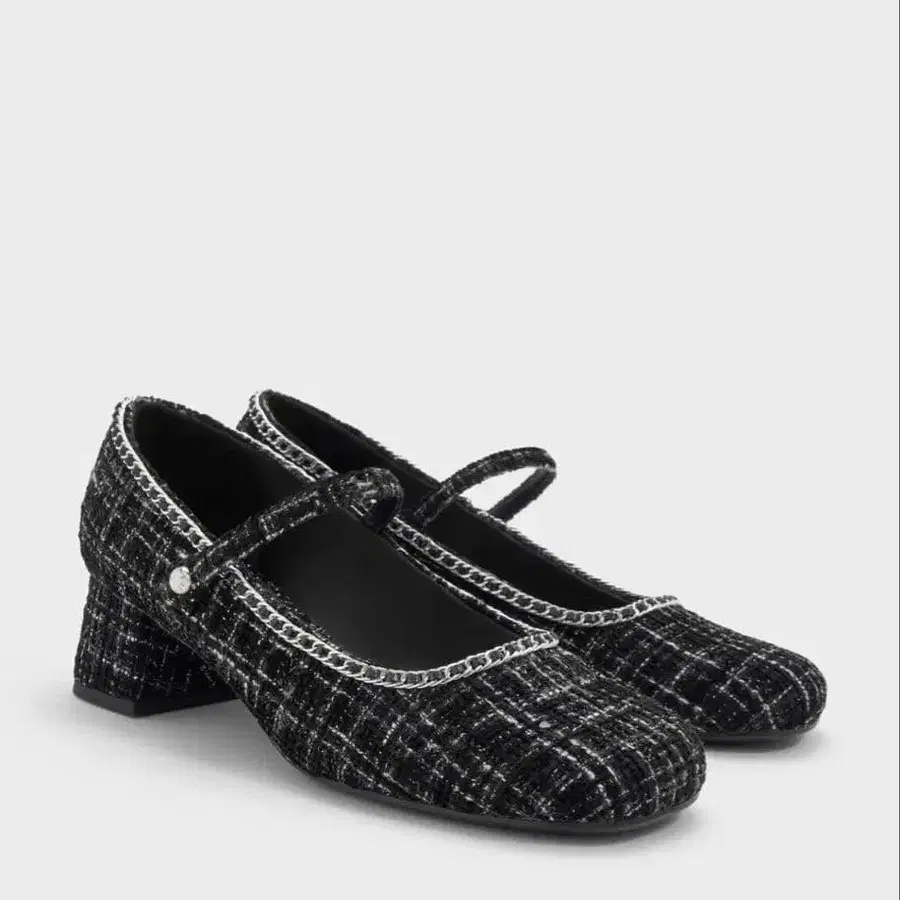 트위드 브레이드 체인 멜리 제인 펌프스 블랙 텍스처드
