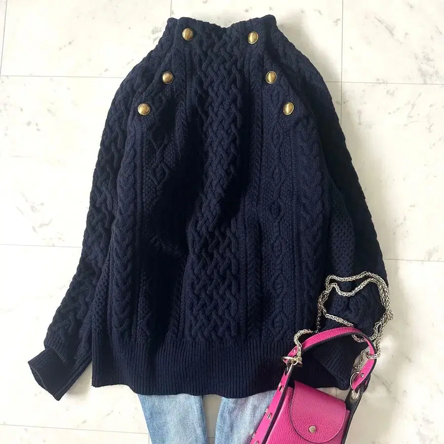 새상품급#프레임워크 해밀턴 아란 케이블 니트 골드 버튼 보틀넥