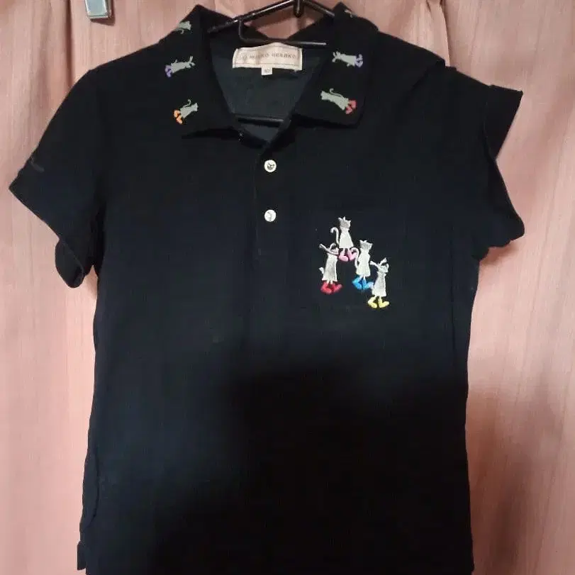미에코 우에사코 여성용 골프 고양이 자수 피케 셔츠