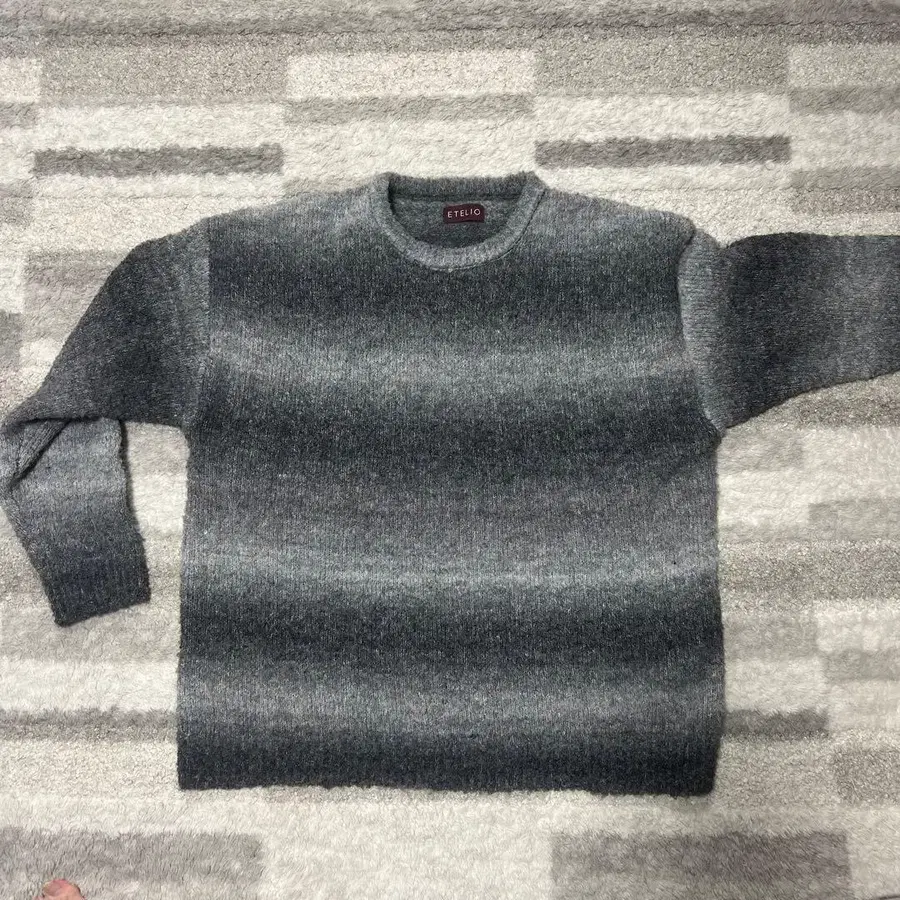 ETELIO 그레이 보더 긴팔 스웨터
