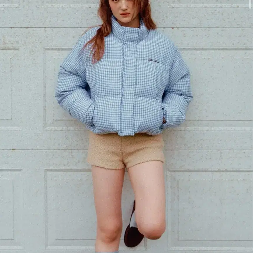 ALLISON BROWN 깅엄 체크 다운 베이비 블루