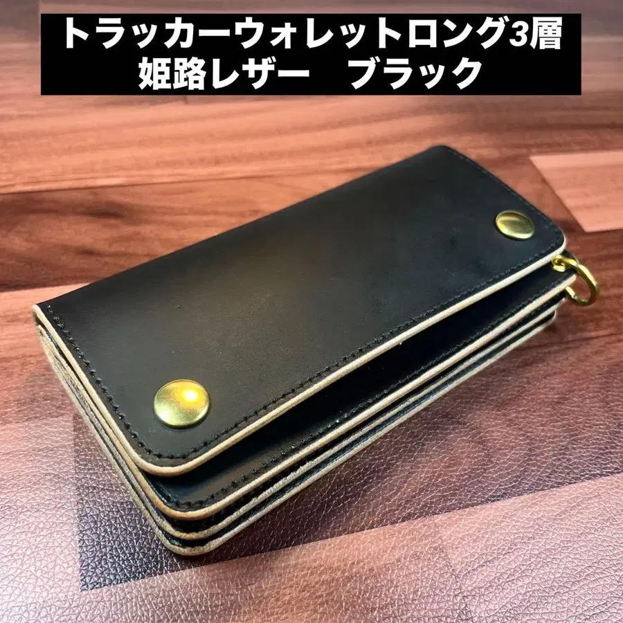 [트래커 지갑 롱 3층] 블랙 히메지 가죽 골드