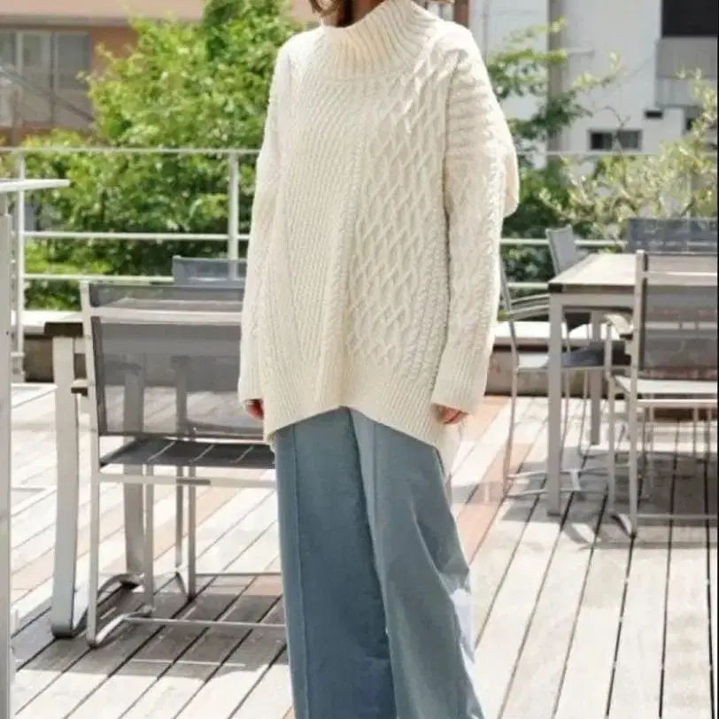투모로우랜드 아이보리 케이블 니트 하이넥