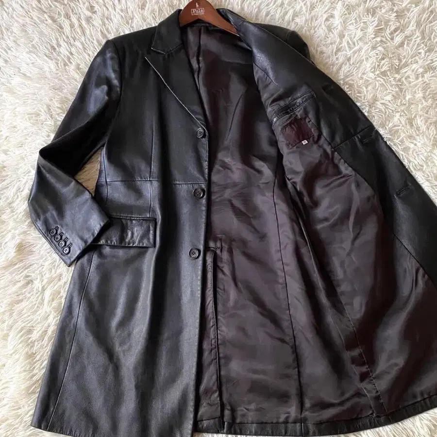 [새상품급] 다케오 키쿠치 양가죽 가죽 체스터 코트 롱 기장 블랙 M