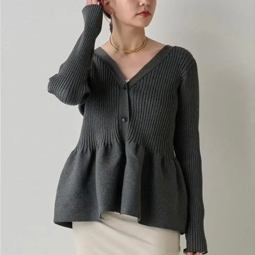 개럴개런트 [ 앞뒤 2way ] 페플럼 2WAY 가디건 그레이
