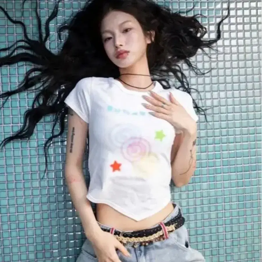 RuNaKiHu 롤리팝 앰버 크롭 반팔 티셔츠 (WHITE)