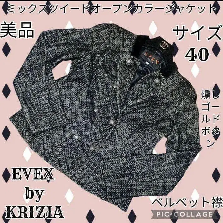 밀라노 발 럭셔리 브랜드, 크리치아의 캐주얼 라인, 에벡스 바이 크리치아 ( EVEX by KRIZIA )의 벨벳 옷깃 훈증 골드 버튼 믹스 트위드 더블 브레스트 오픈 카라 자켓입니다.