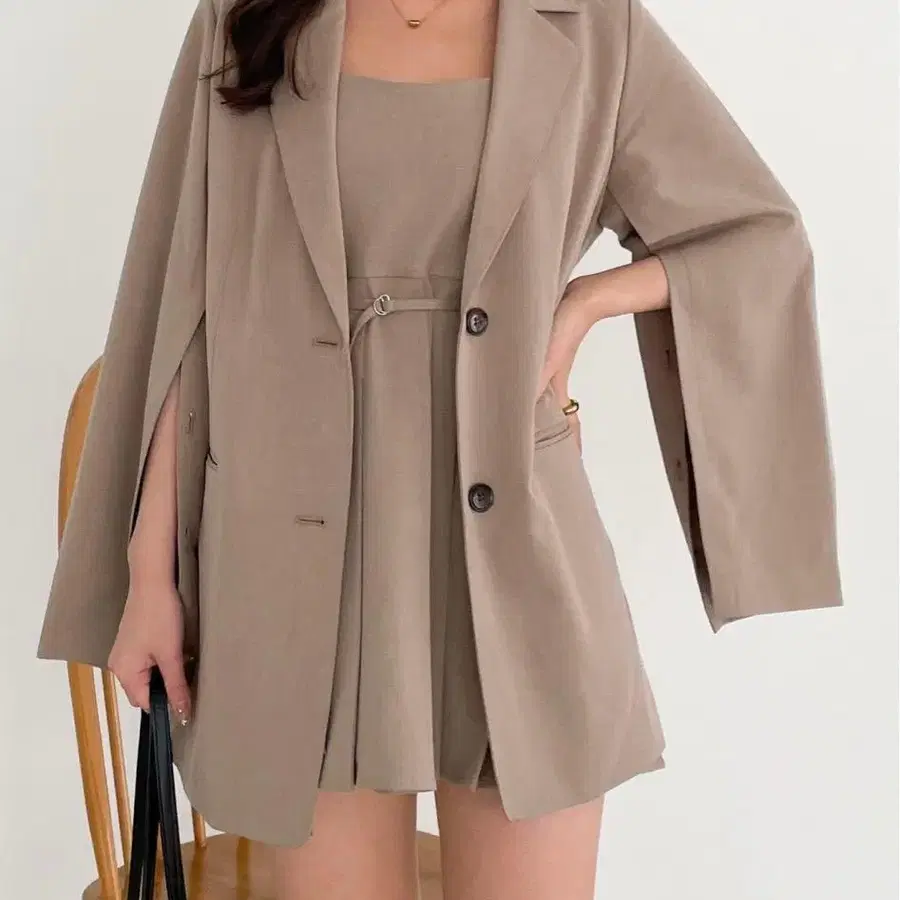 Heather 테일러드 자켓 수트 자켓 브라운 헤더