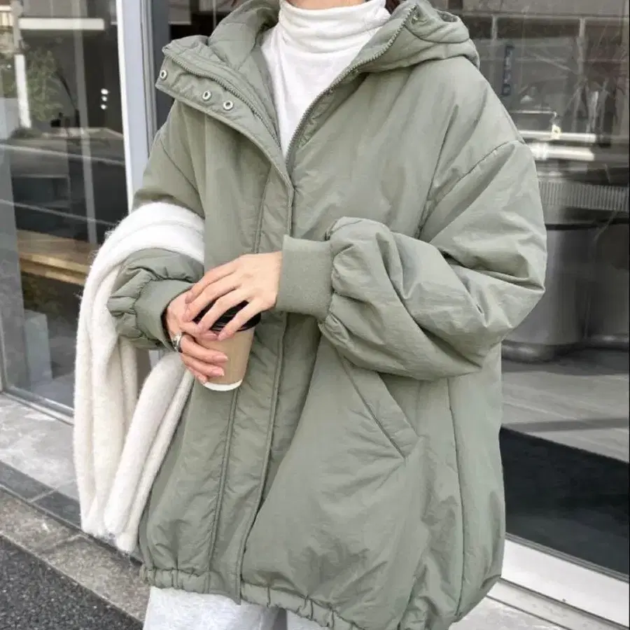 [ andme ] 올리브 그린 후드 부착 다운 자켓