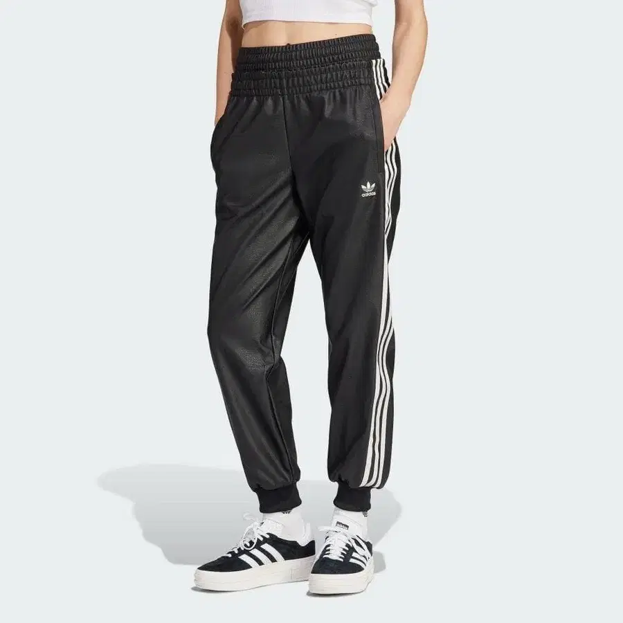 트랙 와이드 팬츠 스트릿 댄스 여성용 WOMEN EEG58 IJ5022 SYNTHETIC LEATHER SST TRACK PANTS BLACK