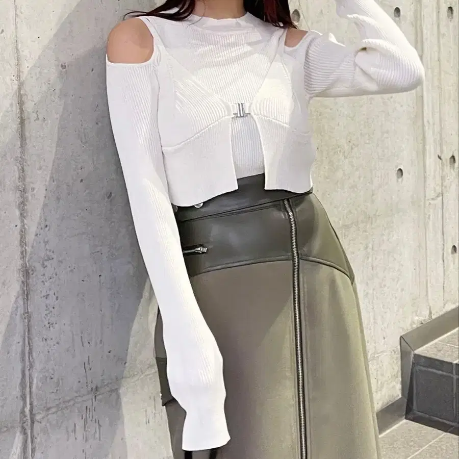 [ MURUA ] 프론트 후크 컷 아웃 니트 아이보리
