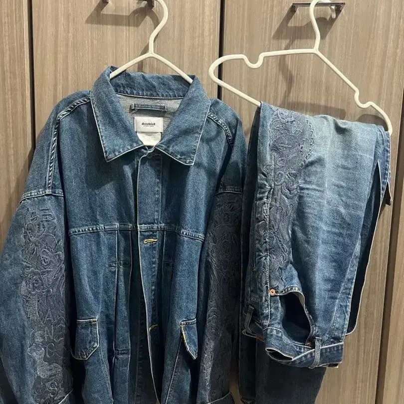 doublet 데님 자켓 팬츠 세트 셋업 자수