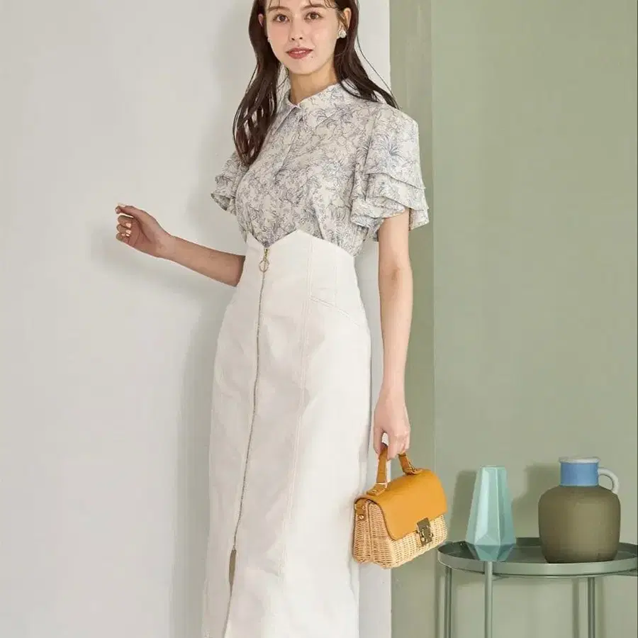 tocco closet 포켓 부착 프론트 지퍼 데님 타이트 스커트