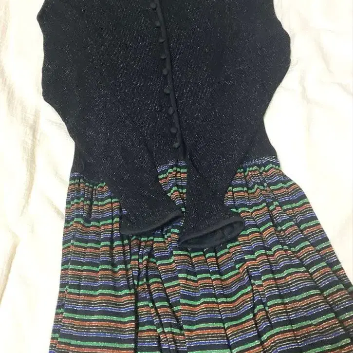 • rienda 바이컬러 오프숄더 리본 니트 원피스