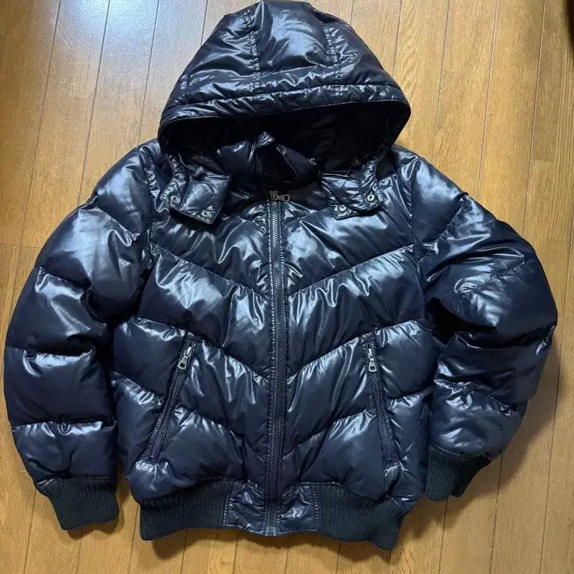 유니클로 프리미엄 다운 자켓 네이비 S 사이즈 후드 부착