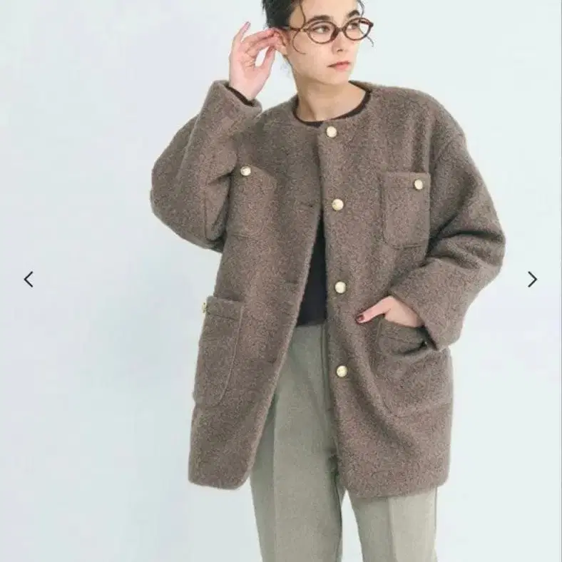 coca 푸들 금장 버튼 노카라 코트 브라운 M