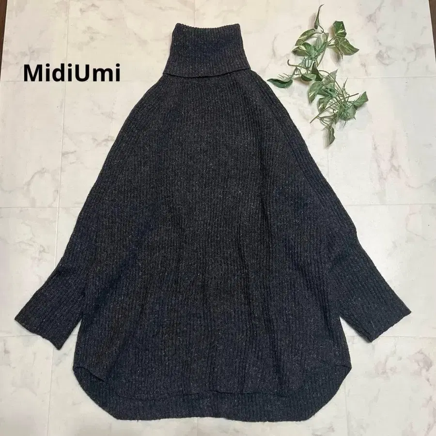 새상품급 MidiUmi 하이넥 리브 니트 울 린넨 알파카 차콜 그레이
