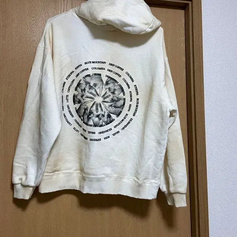 크림색 후드 부착 후드티 백 프린트 히라모토 렌 브랜드 아마노자쿠