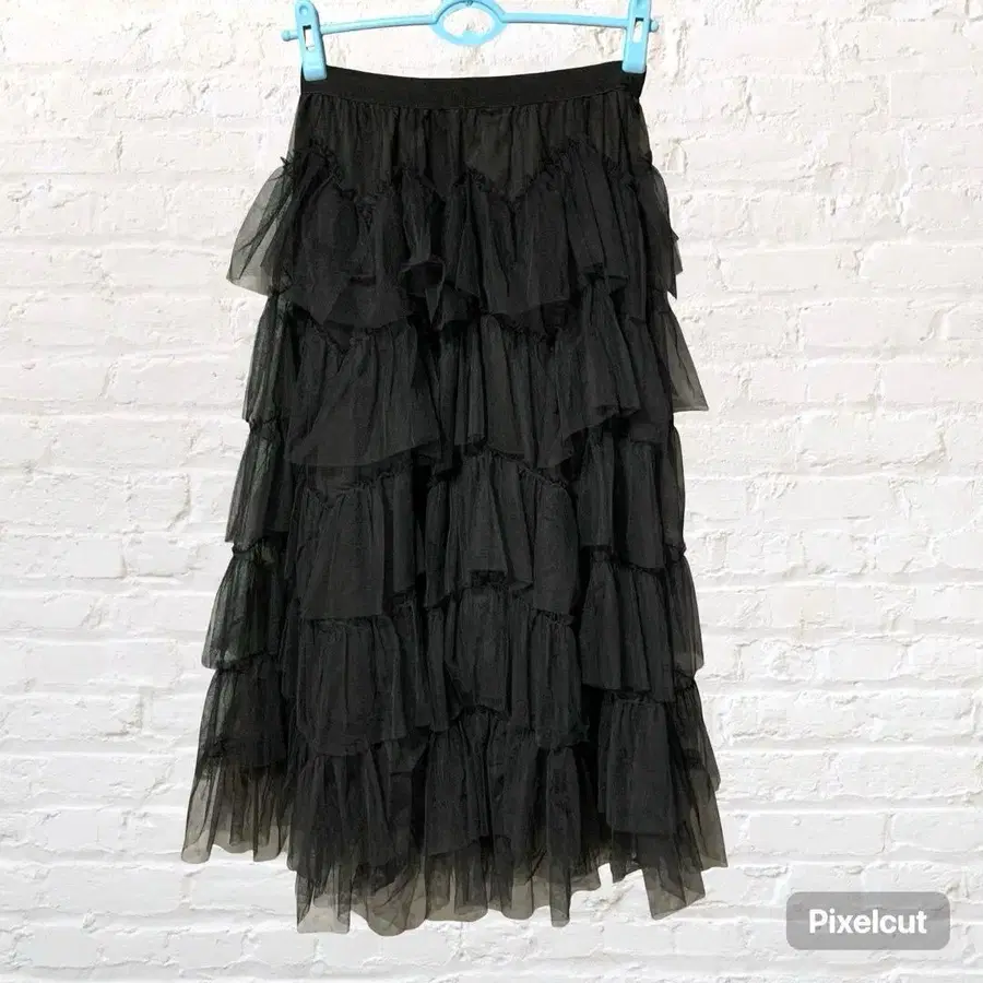 • 프릴 튤 롱 스커트 블랙 플라네 같은 형태