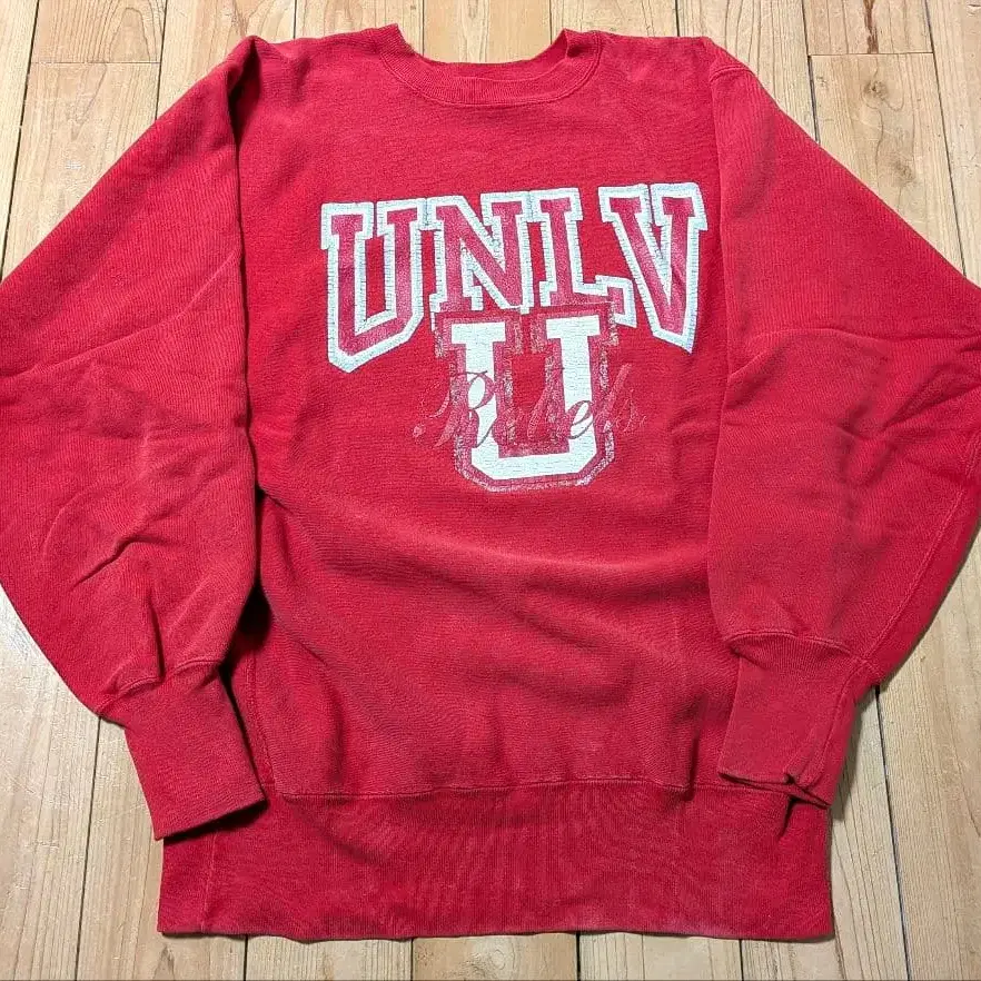 90s XL 리버스 위브 맨투맨 칼리지 로고 레드