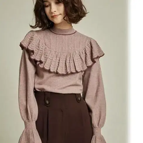 릴리 브라운 시스루 편직 프릴 니트탑