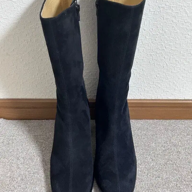 MICHEL KLEIE PARIS 블랙 스웨이드풍 부츠 중간 힐