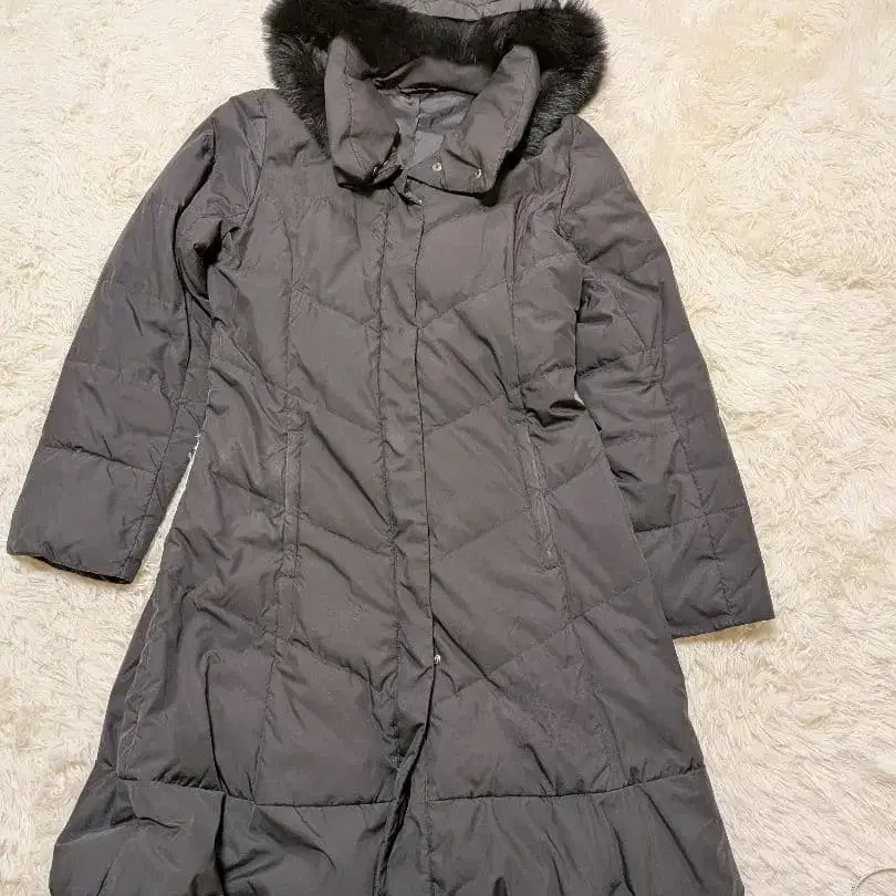 PECA 슬림 다운 롱 코트 후드 블랙 L 사이즈