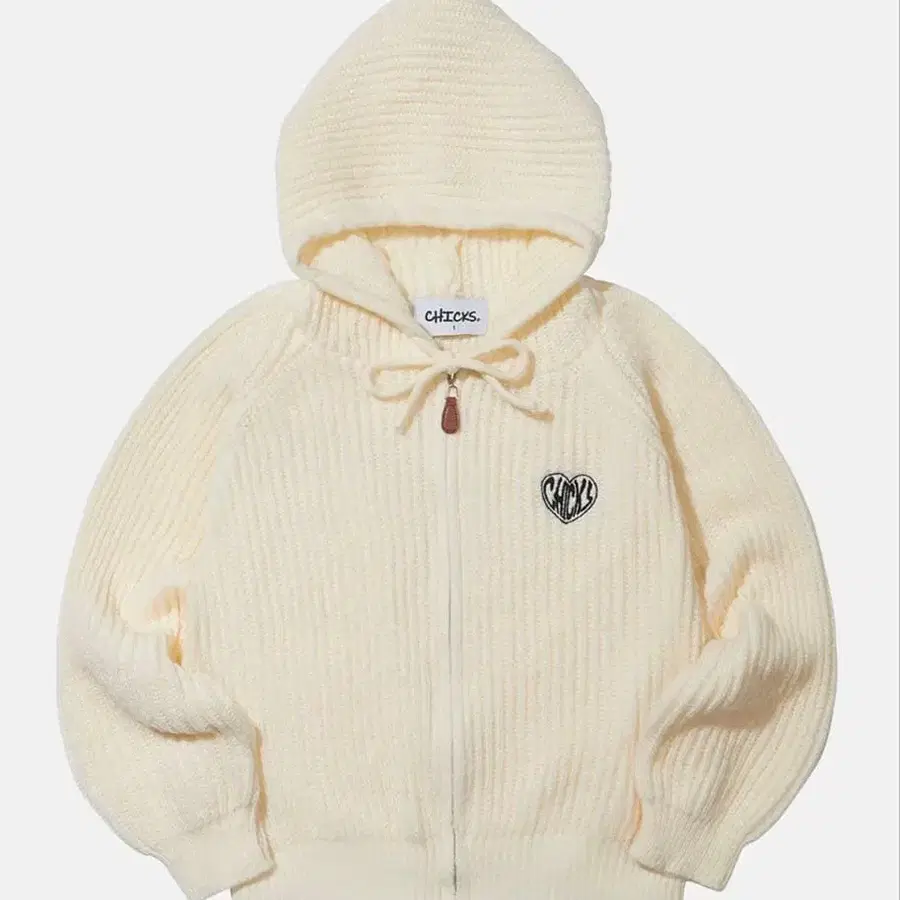 CHICKS HOFE 니트 후드 후드 지퍼 T 크림