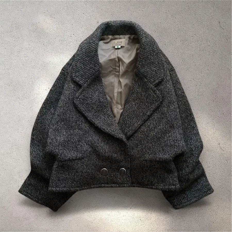 그레이 피 코트 울 리브 니트 숏코트 돌먼 슬리브 테일러드