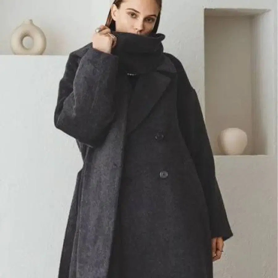 selle glant / 더블 브레스트 샤기 머플러 코트